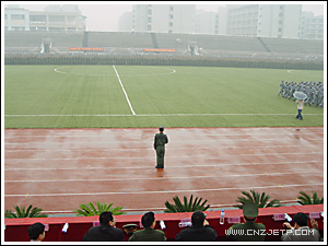 虽然天下着雨,但学院2004级、2005级全体学生依然冒雨在田径场整齐列队。3点30分,伴随着高亢的国歌声,汇报大会正式开始。学院党委书记童学敏在军训团周军团长的陪同下检阅了全体受训学员。接着,阅兵总指挥宣布分列式开始。两个年级88个方阵依次通过主席台。同学们高昂的精神面貌,整齐而矫健的步伐,嘹亮的口号,获得了学院和武警指挥学校领导以及在场老师们的阵阵掌声。